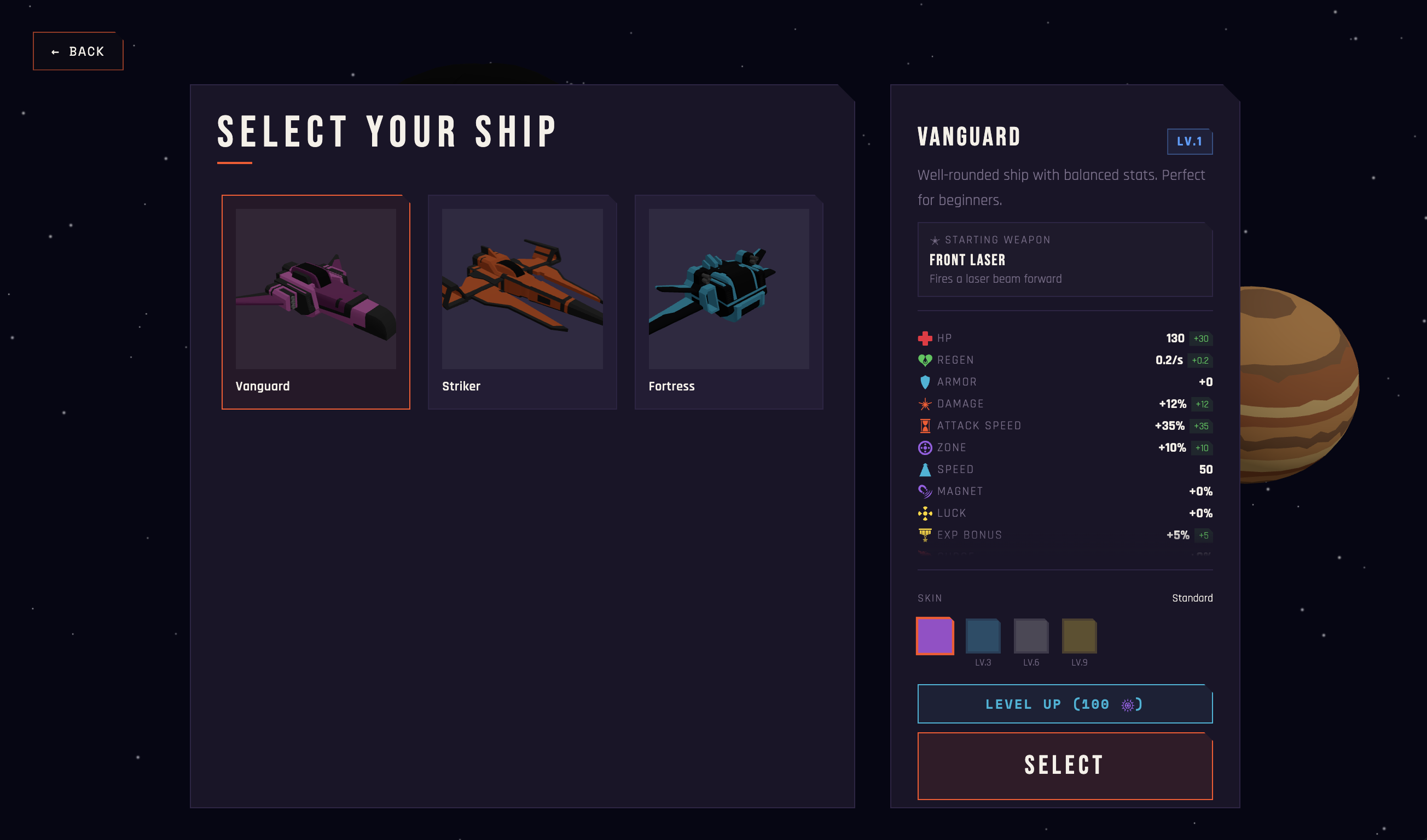 Redshift Survivor is a top-down space roguelite bullet-heaven shooter playable directly in your browser. Pilot your ships through 3 increasingly hostile star systems, blast waves of drones, snipers annd phase-shifters, and take down the Titan Cruiser guarding each wormhole.